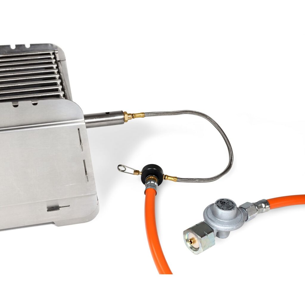 De aansluitset wordt altijd op de bestaande regelaar van de grill aangesloten. Nooit direct op de brander!