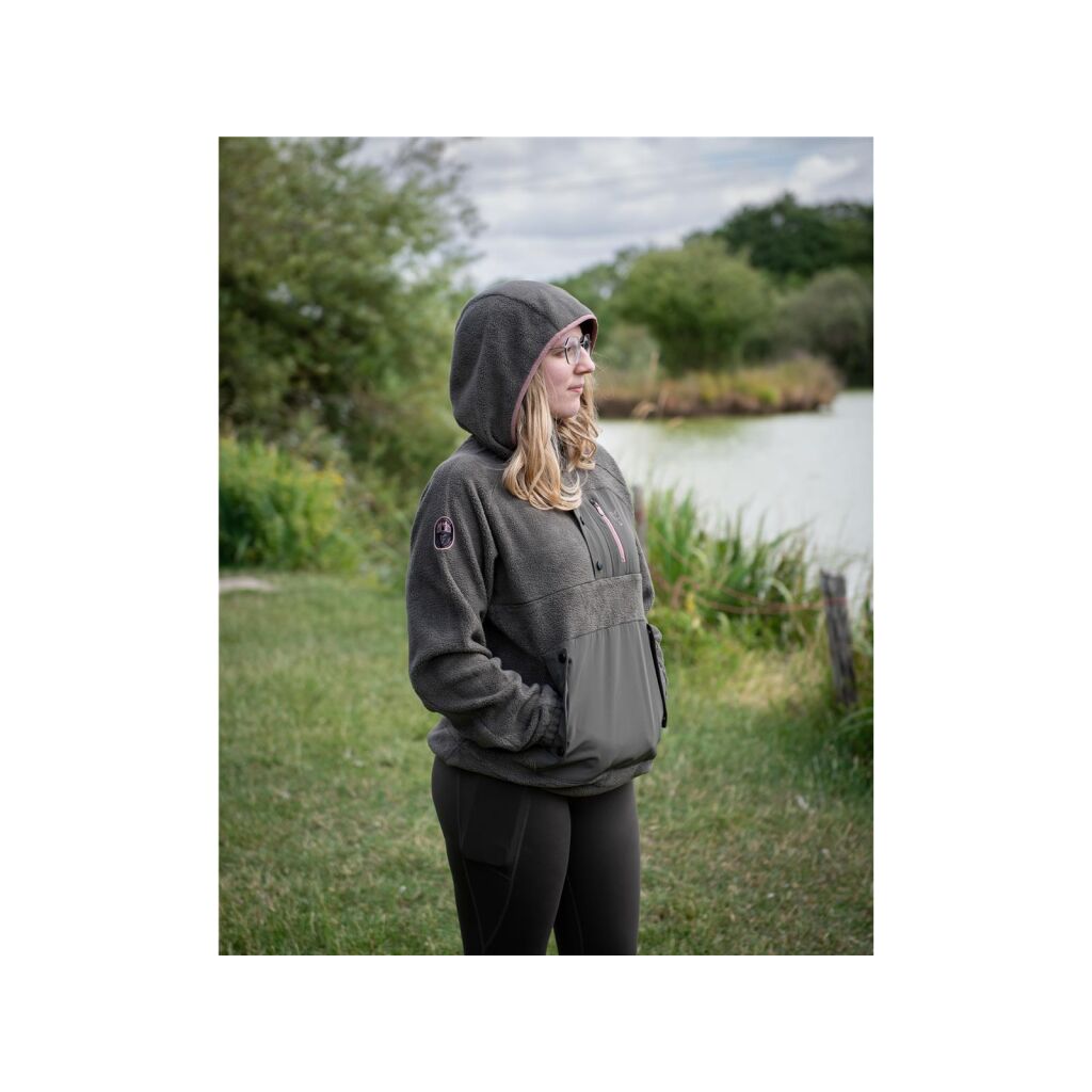 - Seitentasche für die Hände mit Reißverschlüssen und Druckknopfabdeckungen