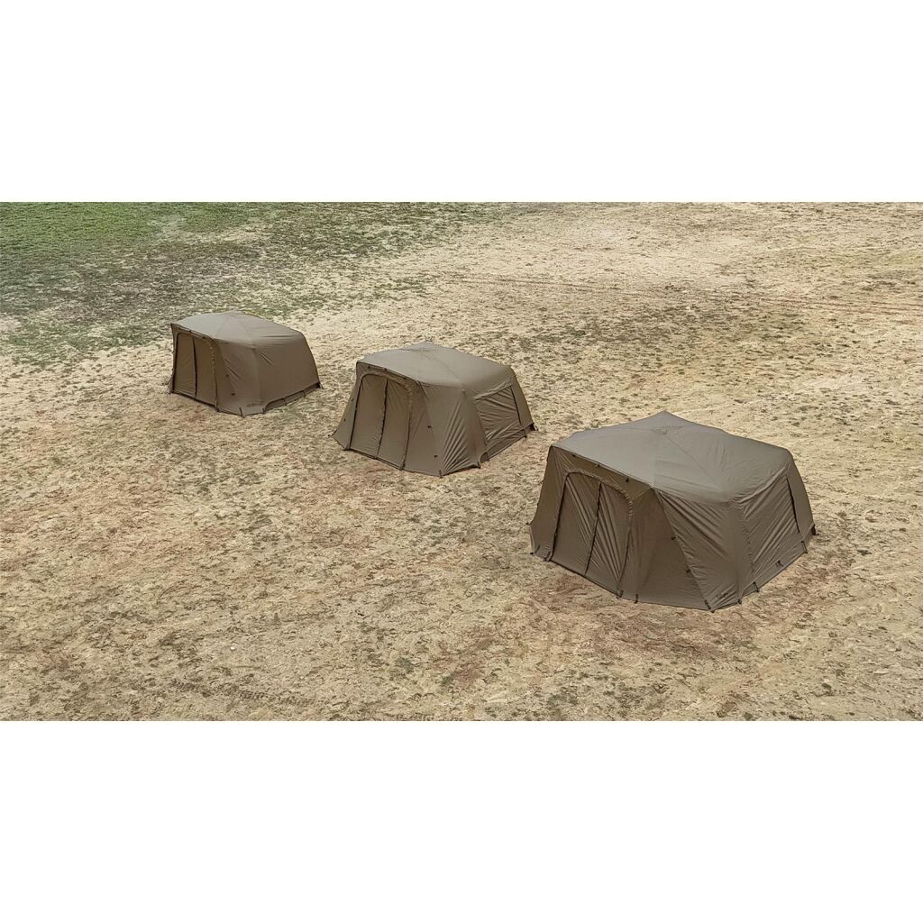 • Der Overwrap wurde entwickelt, um Ihr EXO+ Shelter zu verbessern. Er bildet eine doppelte thermische Barriere, die die Wärmespeicherung bei kälteren Bedingungen verbessert, die Wärmeübertragung im Sommer reduziert und die Kondensation deutlich minimiert.