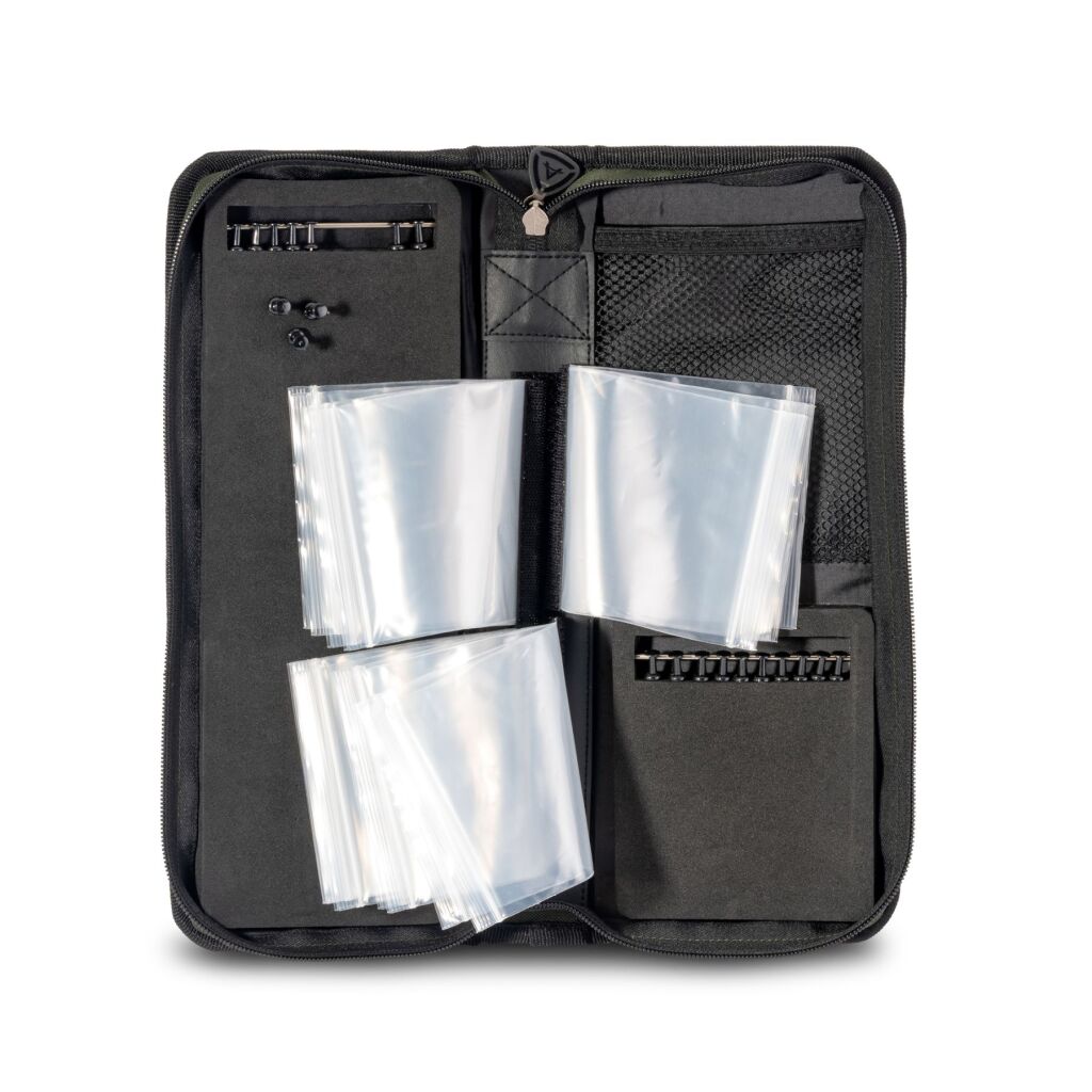 Dieses geräumige Mäppchen ist ideal für die Aufbewahrung der Rigs! Im Inneren befinden sich Rigboards für alle klassischen Rigs / Stiff Rigs und für die kurzen Ronnie-Rigs wurden spezielle Klarssichthüllen verbaut. Aus stabilem 600D Polyester gefertigt kommt es in einem kompakten und spritzwassergeschützten Design. Spezifikationen: