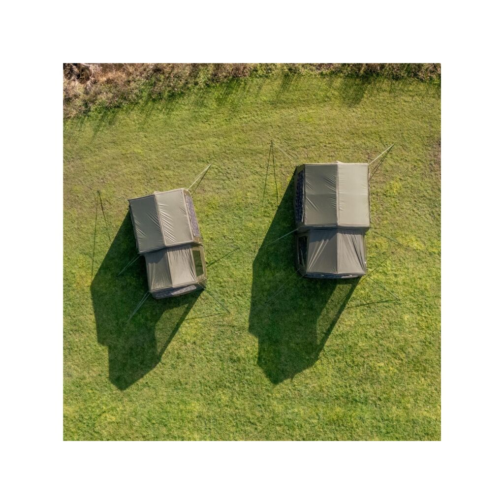 - Die Seiten- und Rückwände verfügen über integrierte Moskitonetze und feste Einsätze, die einen Luftstrom oder einen vollständigen Verschluss ermöglichen. Sie ermöglichen auch einen seitlichen Zugang oder die Platzierung des Bivvys aus verschiedenen Winkeln.