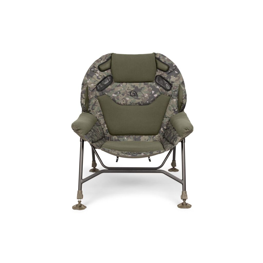 Trotz seiner luxuriösen Ausstattung bleibt der Stuhl bemerkenswert leicht, was Transport und Aufbau zum Kinderspiel macht. Unsere patentierten Beinversteller sorgen für eine schnelle und sichere Positionierung auf jedem Untergrund, während das exklusive Camouflage-Design dem Stuhl ein modernes, stilvolles Erscheinungsbild verleiht.