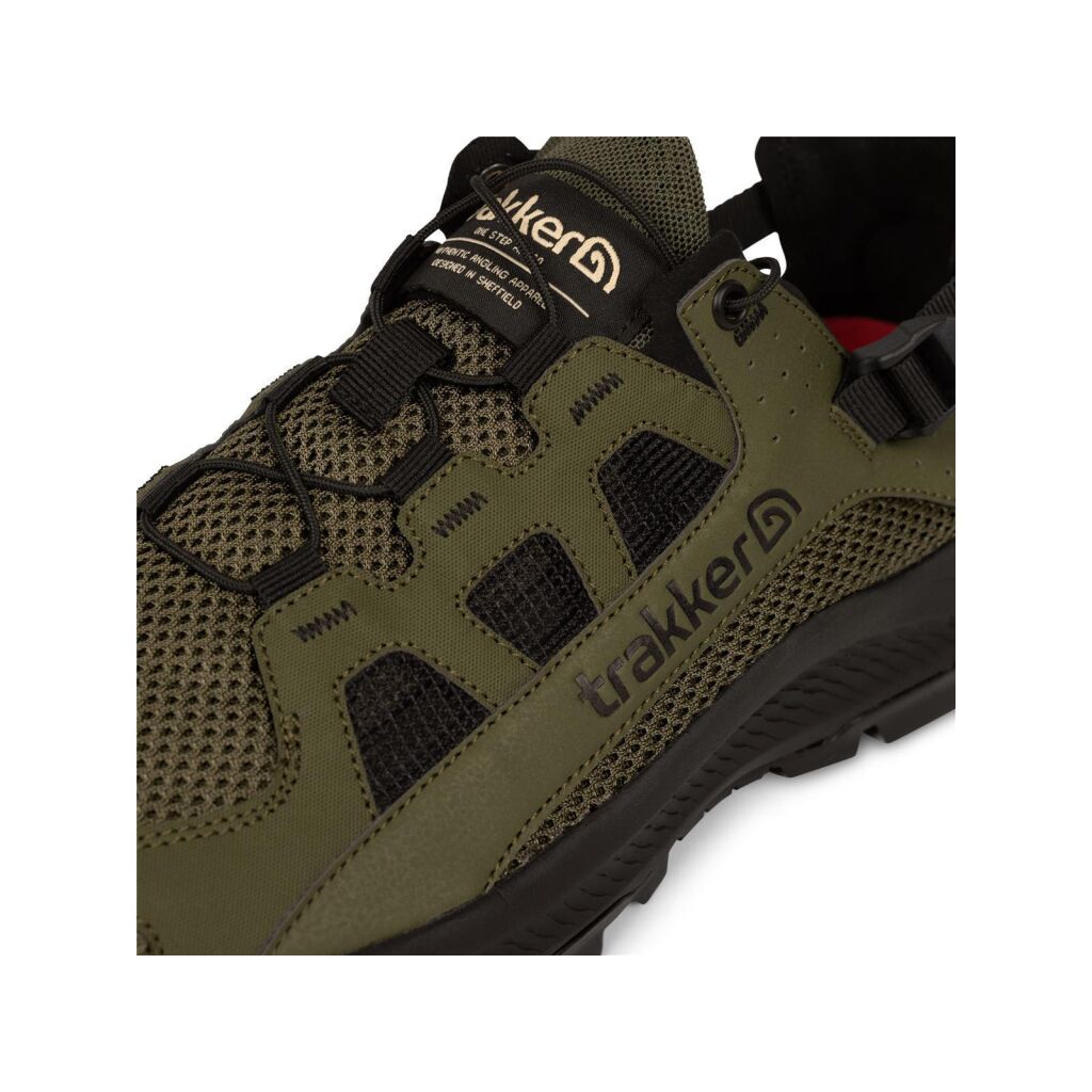 Die Trakker TechPro Scout Shoe – der ultimative Hybridschuh für das Karpfenangeln bei warmem Wetter. Hergestellt aus hoch atmungsaktiven, schnell trocknenden Materialien, bietet dieser Schuh die perfekte Balance zwischen der luftigen Bequemlichkeit einer Sandale und der leistungsorientierten Unterstützung eines Trainingsschuhs.