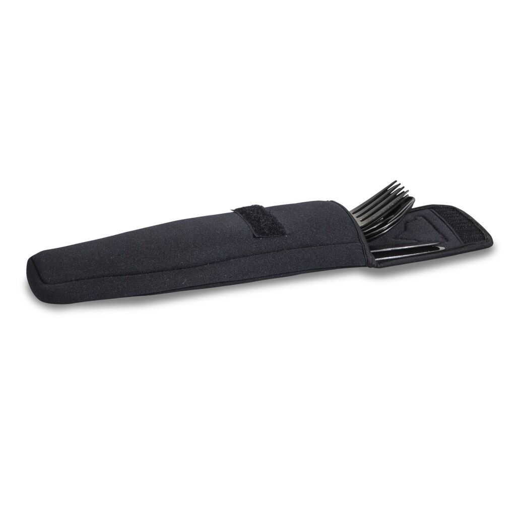 Bovendien wordt het set geleverd in een luxe, zwarte neopreen tas. De set bevat een mes, vork, lepel en theelepel.