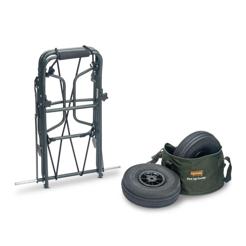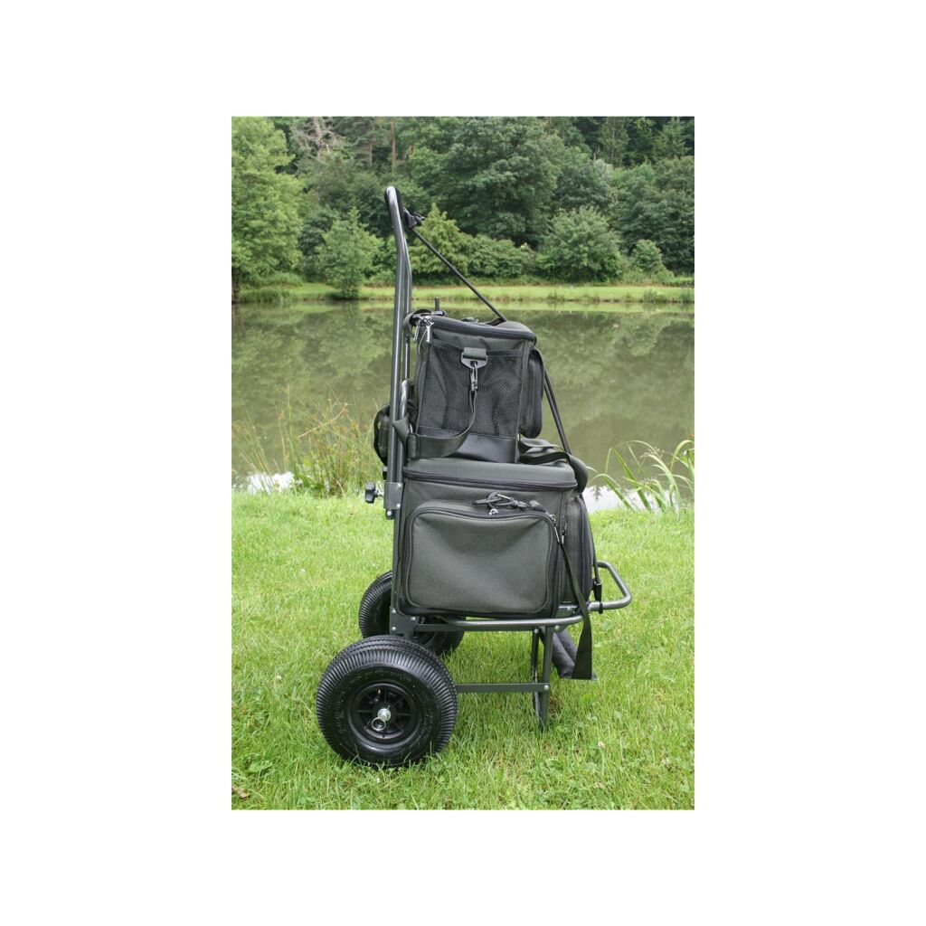 Een trolley zoals deze is ideaal om veel visspullen naar je visstek te vervoeren. Maar wie kent het niet, de meeste van deze trolleys zijn door hun eigen formaat zelf moeilijk te transporteren. Daarom hebben we dit transportwonder op twee manieren ontwikkeld. Opgebouwd kan er ontzettend veel visgerei op worden gestouwd en vervoerd. Ingeklapt past de trolley in de kleinste hoek. Gemaakt van poedergecoat staal met luchtbanden die eenvoudig en snel met splitpennen kunnen worden verwijderd en in de meegeleverde tas kunnen worden opgeborgen. Tevens worden er twee spanbanden meegeleverd.