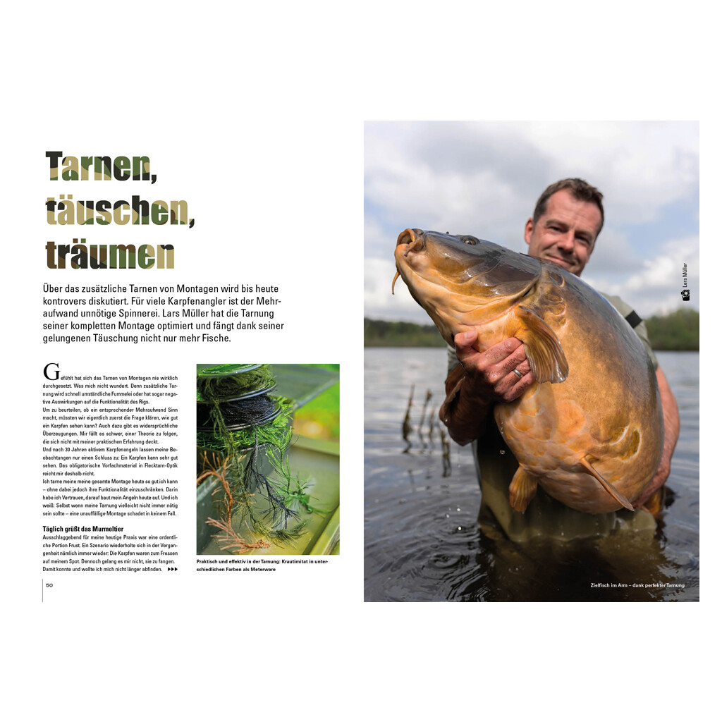 Over extra camouflage van montages wordt tot op de dag van vandaag fel gediscussieerd. Voor veel karpervissers is de extra moeite onnodige onzin. Lars Müller heeft de camouflage van zijn volledige montage geoptimaliseerd en vangt dankzij zijn geslaagde misleiding niet alleen meer vis.