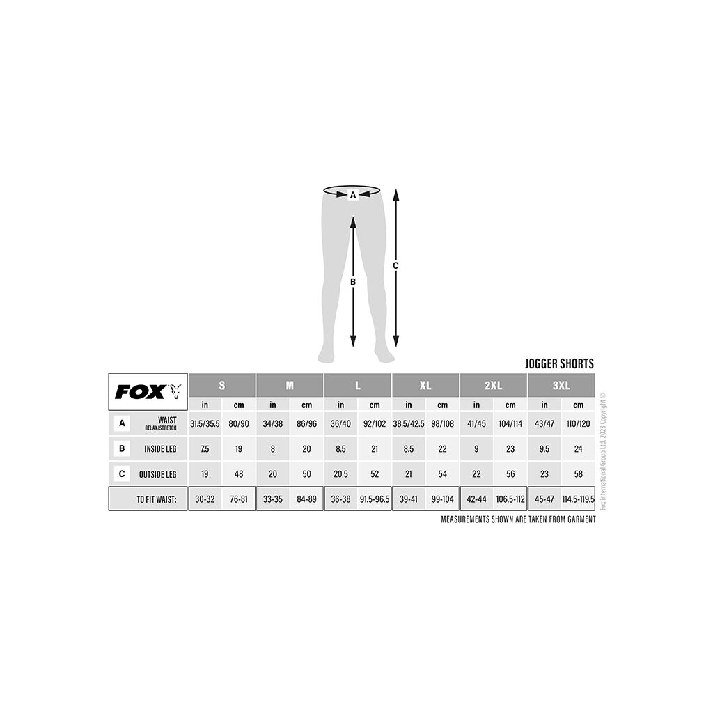 De Fox LW Camo Jogger Short is verkrijgbaar in de maten S tot en met 3XL, zodat elke visser de perfecte pasvorm kan vinden.