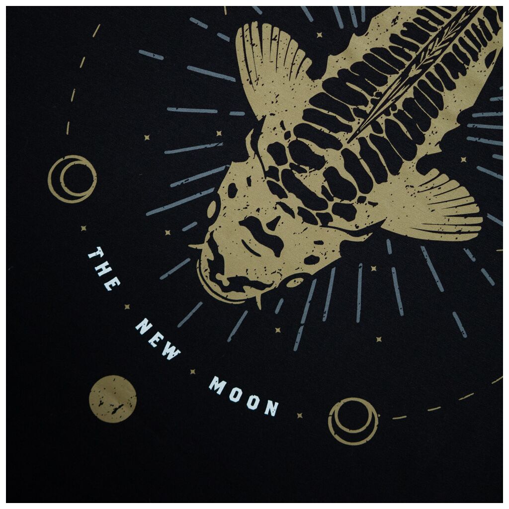 Al sinds het prille begin was onze "Make Your Own Luck"-lijn enorm populair. Verschillende keren kregen we de vraag: "Komt er ook een versie met een spiegelkarper?" Speciaal ontworpen als een set die elkaar perfect aanvult, speelt onze 'New Moon'-grafiek visueel in op hetzelfde concept, waarbij de maanfasen onze "geluk" tijdens het vissen beïnvloeden.