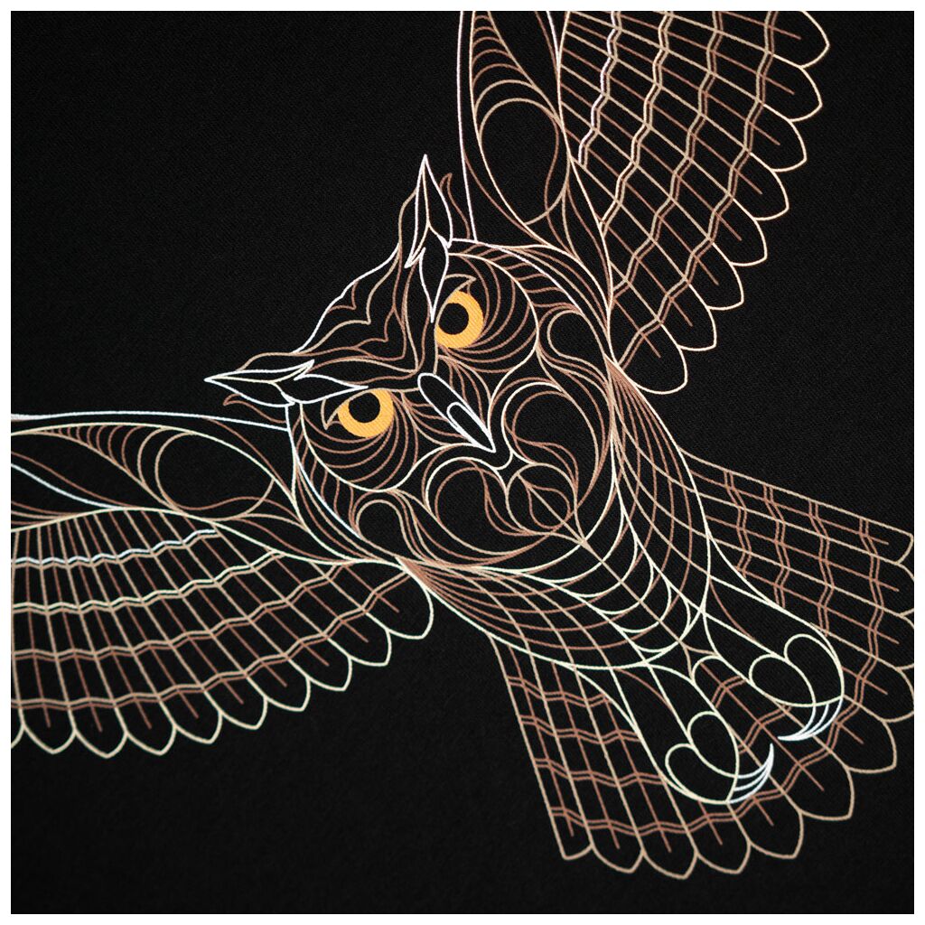 Het zien van een uil die geruisloos over ons heen glijdt en op jacht gaat naar zijn prooi, is iets waar we echt van genieten wanneer we in het spookuur aan de waterkant zitten. Ons “Hunter”-motief is een eerbetoon aan dit majestueuze dier. Het is ontworpen in keyline-stijl om de zachte, stille beweging van de veren vast te leggen. Gedetailleerde 5-kleuren zeefdruk op superzachte, 150 g zware biologische stof met geweven zijlabels.