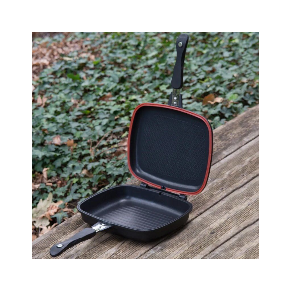 Onze dubbele grillpan – De perfecte oplossing voor heerlijk koken aan het water. Geperst aluminium, antiaanbaklaag, magnetische grepen en veel meer!