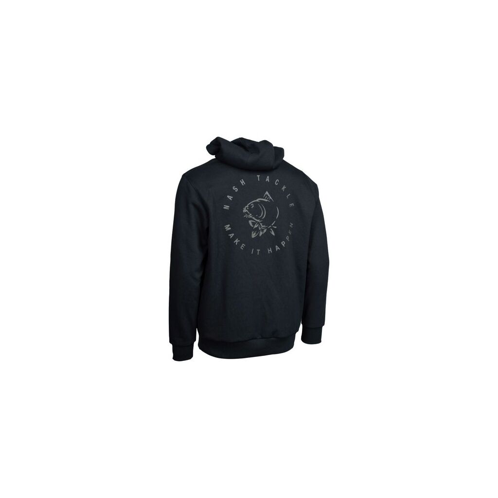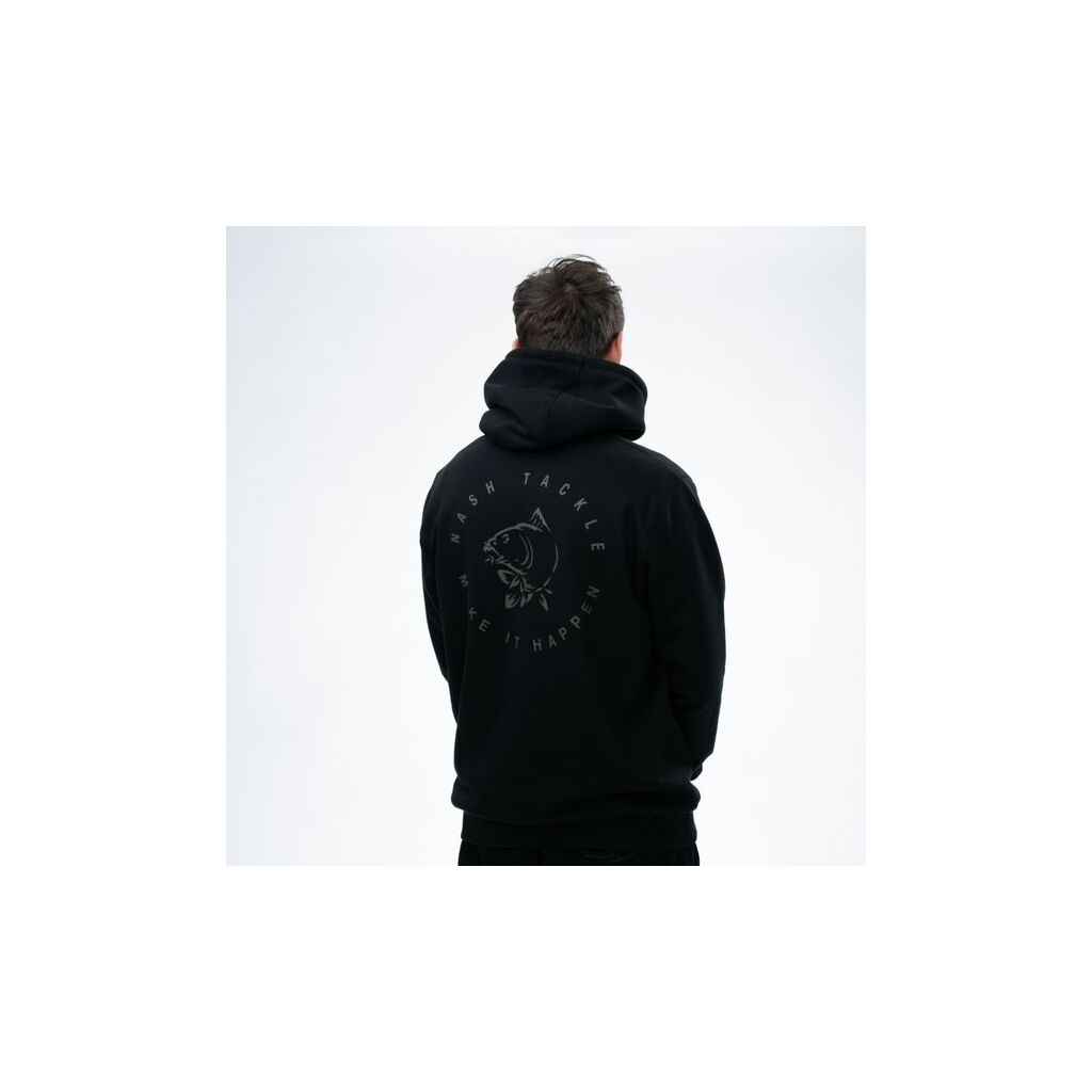 De Nash Make It Happen Carp Logo Hoodie is een iconisch kledingstuk voor de gepassioneerde karpervisser. Met het opvallende en direct herkenbare Nash visontwerp op de achterkant en het Nash Blocklogo op de borst, combineert deze hoodie stijl met functionaliteit.