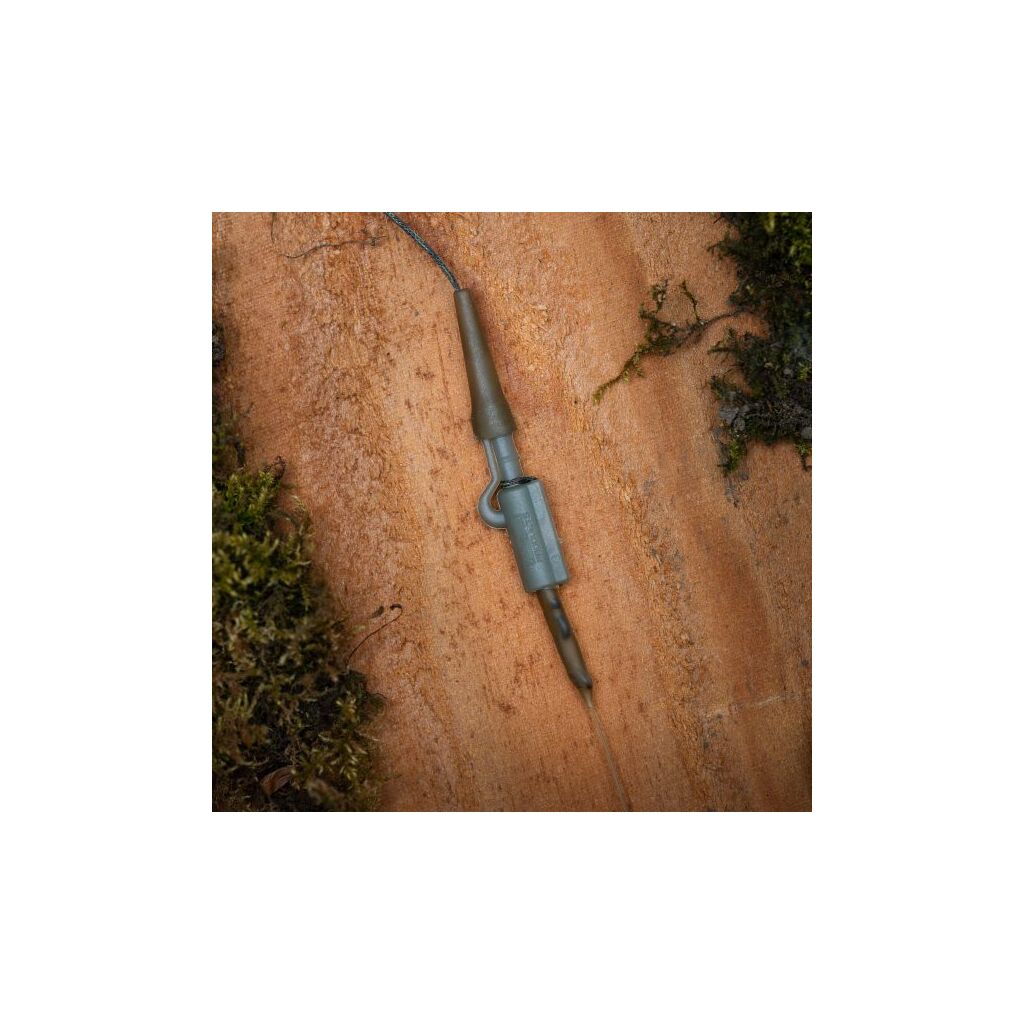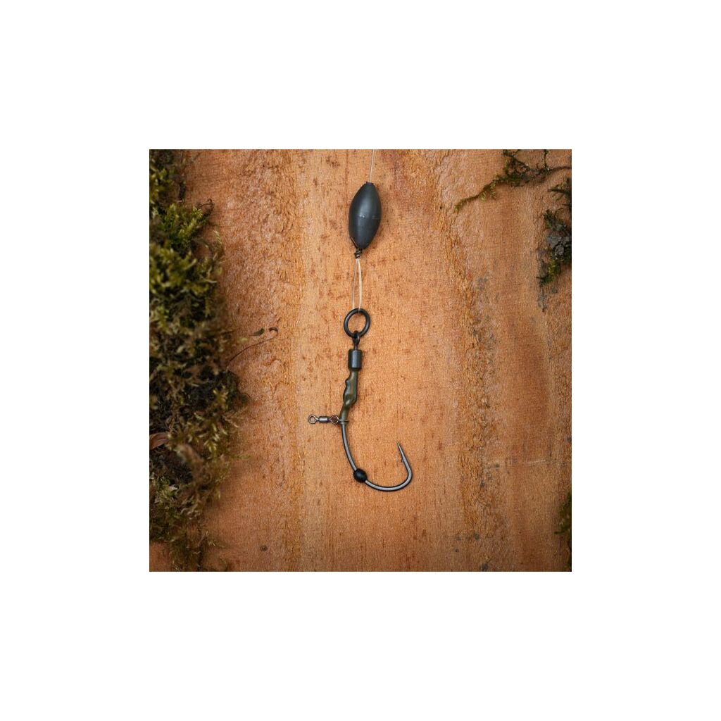 Deze Silk Ray unleaded leader met Hit&Run loodclip compleet met een Ronnie Stiff rig size 4 of 6 is kant en klaar gemaakt om snel te kunnen vissen. De loodvrije Silk Ray leader van 90cm zorgt ervoor dat de laatste meter van jouw montage mooi de contouren van de bodem volgt om de vissen niet af te schrikken. De bekende Hit&Run clip geeft je de zekerheid dat je veilig vist want zodra er een lijnbreuk optreed lost de vis alles behalve het rigje. De Ronnie Rig is gemaakt van Chod Mono materiaal met een Curved KD haak en is ideaal om te gebruiken met een pop-up of Wafter. Om deze rig te overloaden is een Tungsten Contraliner van 1gram toegevoegd. Met het aas en rig in de bek zakt de Contraliner die buiten de bek hangt naar beneden en trekt de haak dus terug naar de onderlip van de vis. De zeer stijve boom sectie zorgt ervoor dat je nooit in de war komt tijdens het inwerpen.