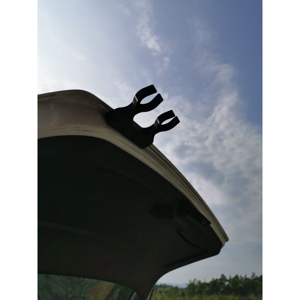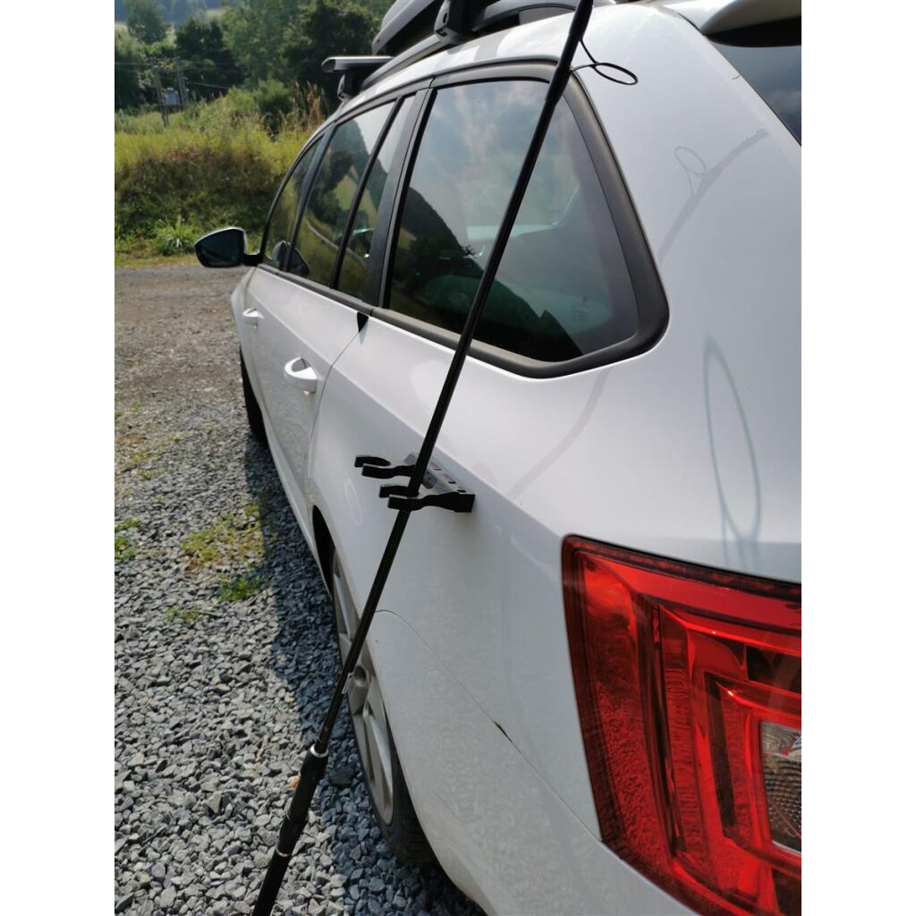 Hengelhouder met een magneet aan de binnenkant, die de hengels aan de auto of andere metalen oppervlakken vasthoudt.