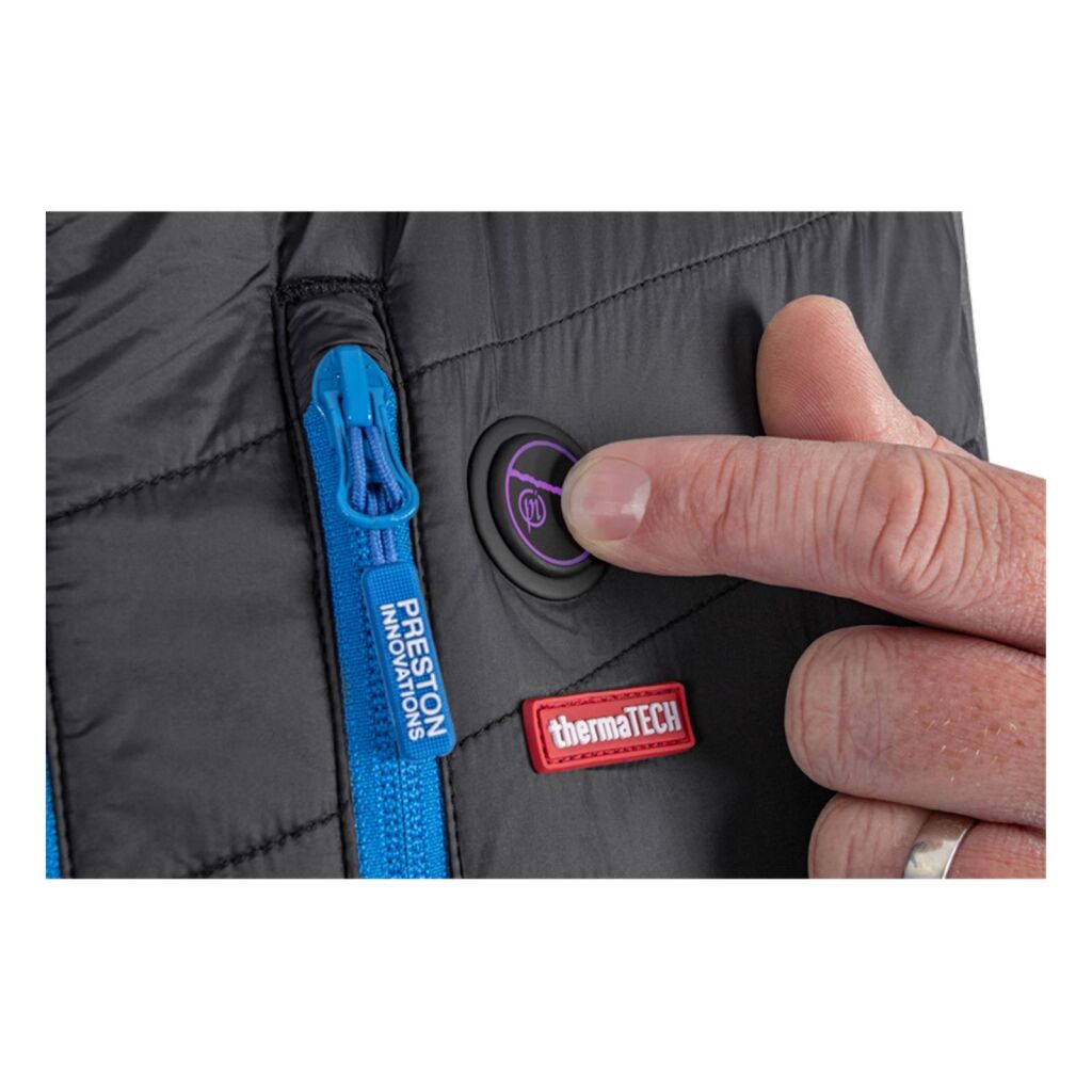 Die neueste Ergänzung des ständig wachsenden Thermatech-Bekleidungssortiments ist die beheizbare Weste. Das ideale Kleidungsstück für das Tragen unter einer Softshell- oder wasserdichten Jacke. Die Weste verfügt über 5 Heizelemente, die an den richtigen Stellen für Wärme sorgen. Die aus hochwertigen Materialien gefertigte Weste lässt sich bequem über Kleidungsstücken tragen und verfügt über robuste Reißverschlusstaschen, einen Hauptreißverschluss und eine Innentasche für die Powerbank. *POWERBANK NICHT IM LIEFERUMFANG* Heizzeiten - basierend auf einer Preston Thermatech Power Bank - 20000mAh Niedrig, Blau - 8 Stunden Mittel, Grün - 7 Stunden Hoch, Lila - 6 Stunden Sehr hoch, Rot - 5 Stunden *Hinweis: Die Heizzeiten können je nach Alter und Leistung der Powerbank variieren.