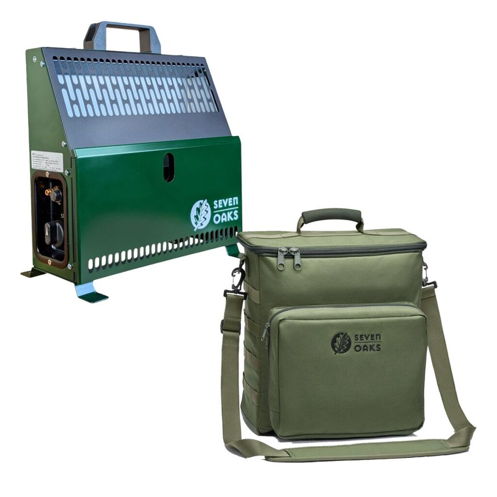 Ontwikkeld voor het veilig opbergen en transporteren van de Seven Oaks Gasheater. Deze tas heeft een intern klittenband verdeelschot, versterkte zijwanden en een waterbestendige basis. De grote voorzak met rits biedt ruimte voor slangen, regulators en ander toebehoren. Een verstevigde EVA-handgreep en een verstelbare, gevoerde schouderriem zorgen voor gebruiksgemak.