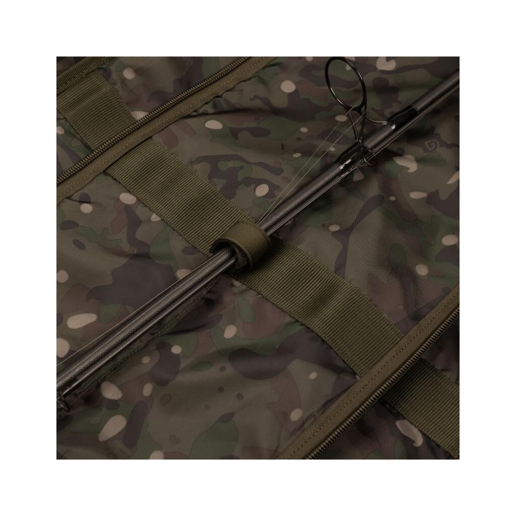 Er is een extra hengelband en een elastische lus die kunnen worden gebruikt om de werppijp op te bergen, zodat ook deze door de bekleding wordt beschermd.