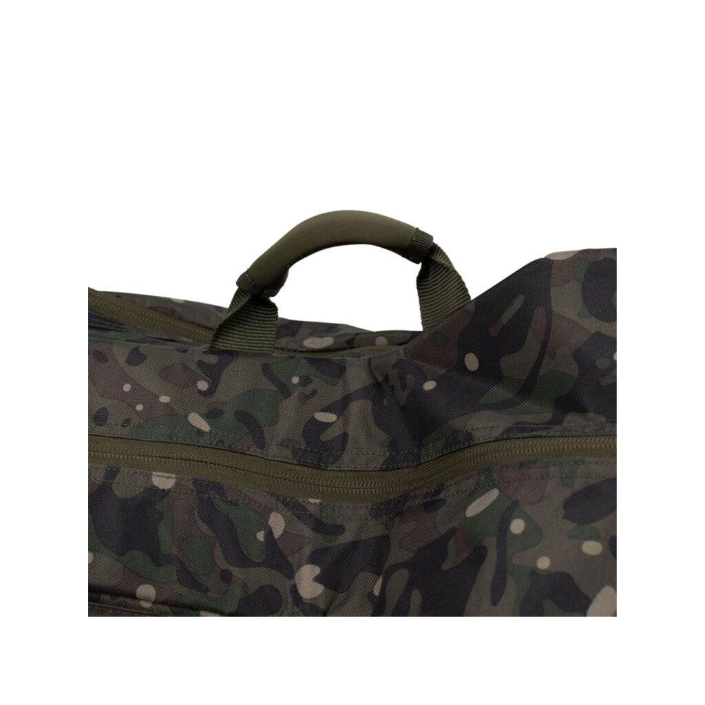 Aan beide zijden van de NXC 3 Rod Sleeves bevinden zich grote buitenvakken met ritsen, waarin schepnetten, stormpalen en andere accessoires kunnen worden opgeborgen.